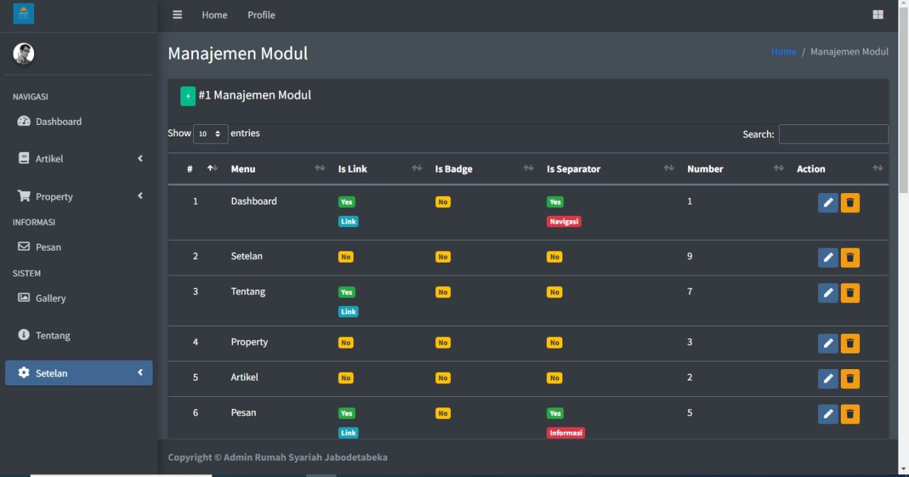 Pengguna dapat mengatur dan menyesuaikan menu pada website properti sesuai dengan kebutuhan.